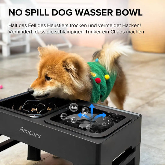 Amicura Raised Dog Bowl 2-in-1 Leak-Proof Foldable Water Bowl Anti-Gulping Bowl 4 Height-Adjustable Raised for Dogs and Cats