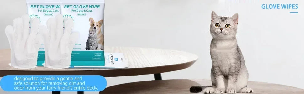 6pcs Unscented Extra Thick Pet Cleaning Wipes for Dogs & Cats,Dog Washing Bathing Deodorizing Grooming Gloves for Daily Care