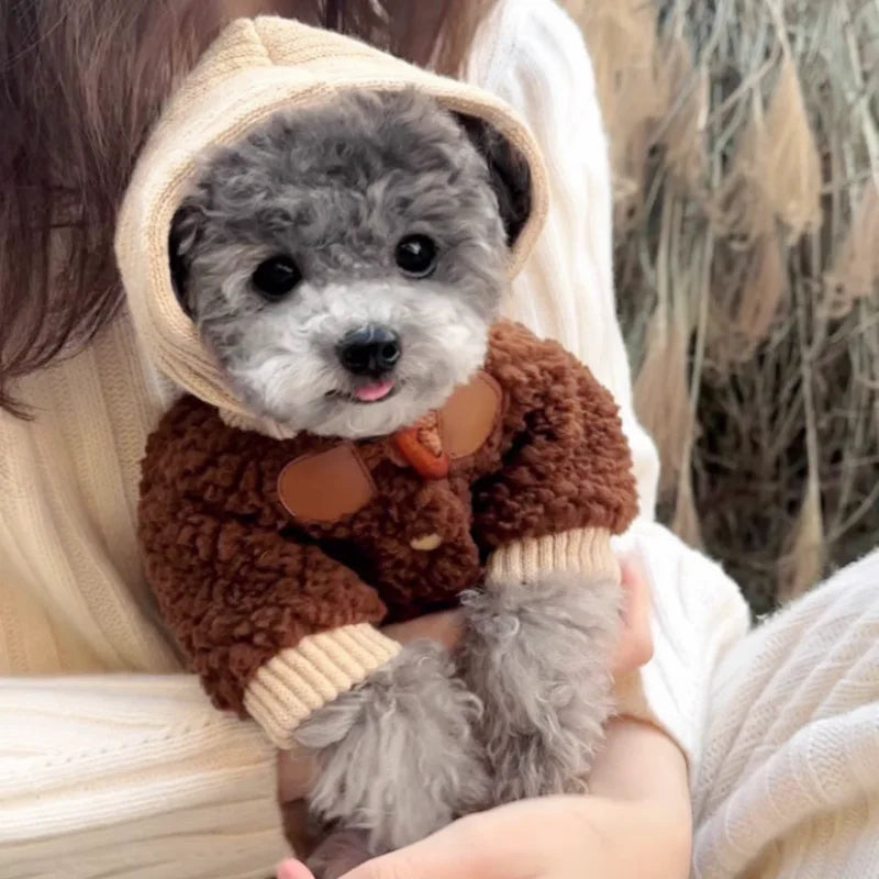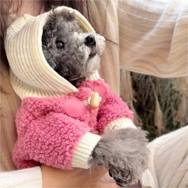Autumn Soft Dog Jacket Coat Cute Solid Dog Clothes Luxury Puppy Overcoat Warm Plush Cat Hoodie Jacket Chihuahua Pet Coat Costume