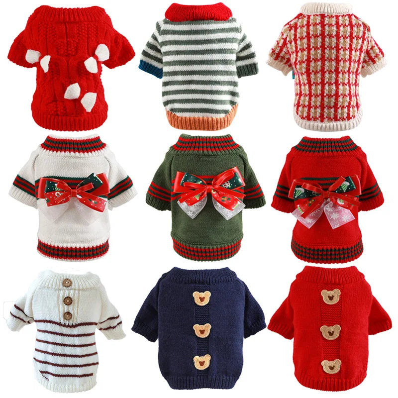 Christmas Dog Sweater Warm Pet Sweater Cute Striped Knitted Bowtie Puppy Cat Sweater Dog Sweatshirt Clothes Coat Outfit Apparel