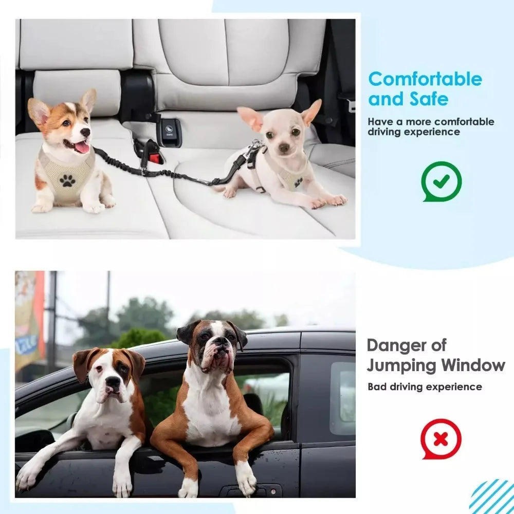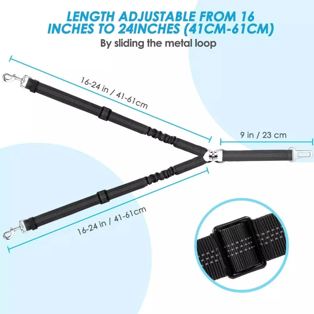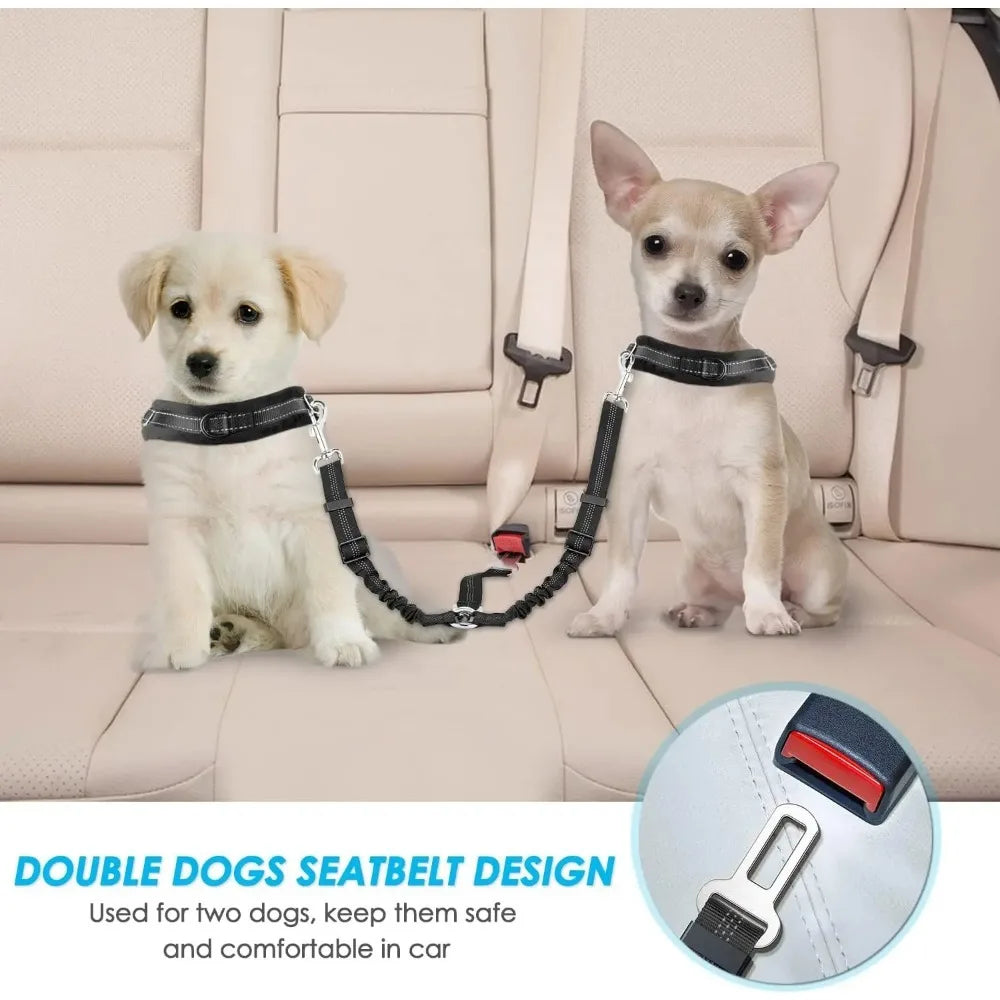 Double Dog Seatbelt Adjustable Vehicle Safety Leash with Elastic Protect Shock Reflective Dog Car Restraint for Pet Safety Belt