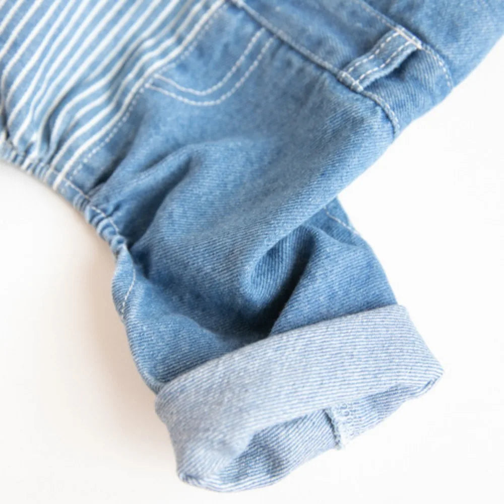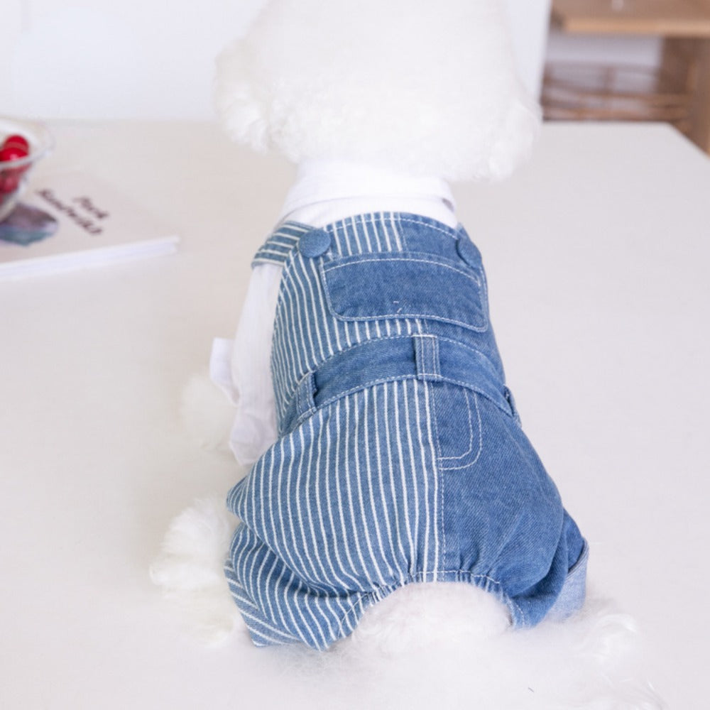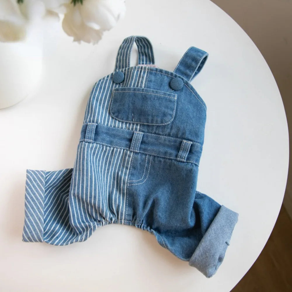 Pet Autumn Winter Striped Patchwork Denim Straps Dog Pants Cat Clothing Teddy Dog Clothing Pets Puppy Clothes Boy Dog Clothes