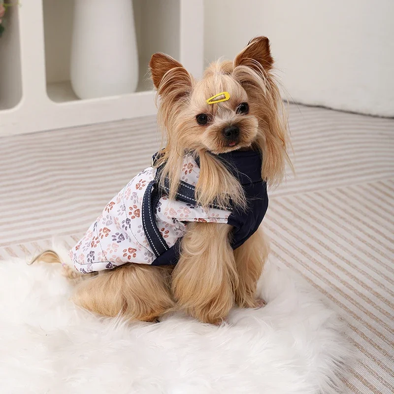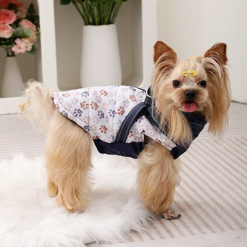 Pet Puppy Jacket With Harness Autumn Winter Warm Dog Clothes For Small Medium Dogs Cat Safe Reflective Waterproof Chihuahua Coat