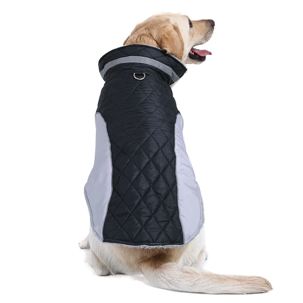 Waterproof Plaid Dog Clothes For Winter Reflective Warm High Neck Pets Jacket With D-ring Thicken Fleece Pet Coat For Large Dogs